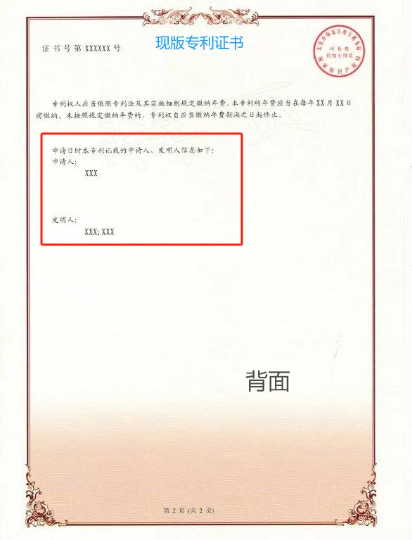 對于授權公告日在202461日之后(含當日)的專利,國家知識產權局頒發新版專利證書。新版專利證書沿用A4規格豎排版式,優化調整著錄事項布局。