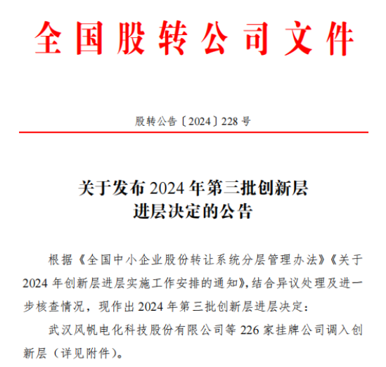 2024520日,全國中小企業股份轉讓系統正式發布《關于發布2024年第三批創新層進層決定的公告》,大正儀表(證券代碼:872715)獲批調入創新層。