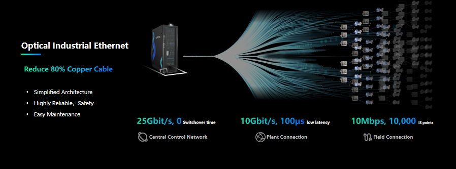 Nyx采用全光工業(yè)網(wǎng)絡(luò),智能現(xiàn)場數(shù)據(jù)以10Gbps速度和并行冗余方式直達控制數(shù)據(jù)中心,打造極簡的網(wǎng)絡(luò)架構(gòu),節(jié)省電纜和空間90%以上。