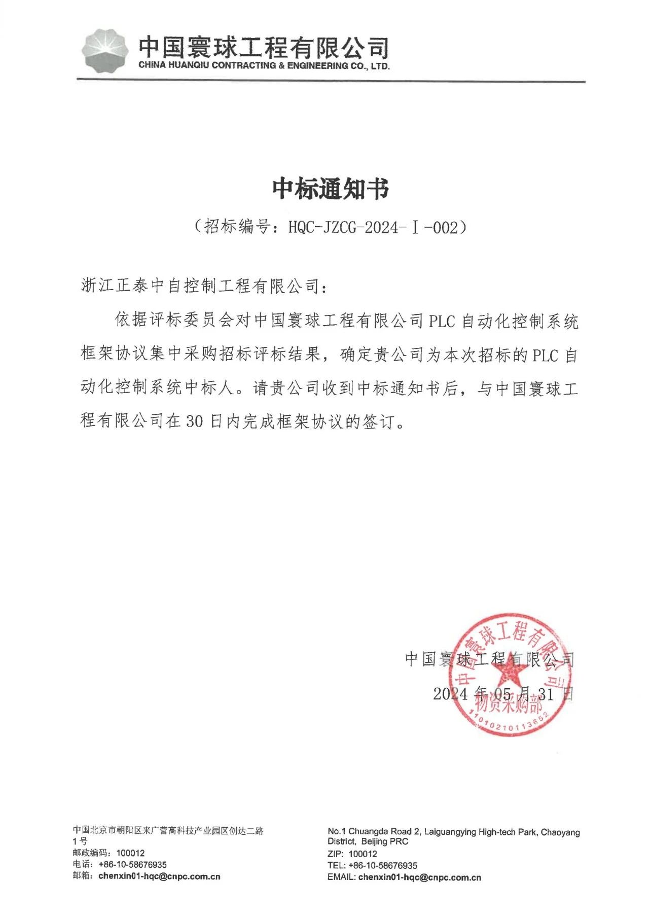 此次中國寰球PLC自動化控制系統框架協議僅兩家企業入圍,正泰中自為其中之一,成功中標,標志著行業客戶對中自產品力、技術力、服務力的充分認可。