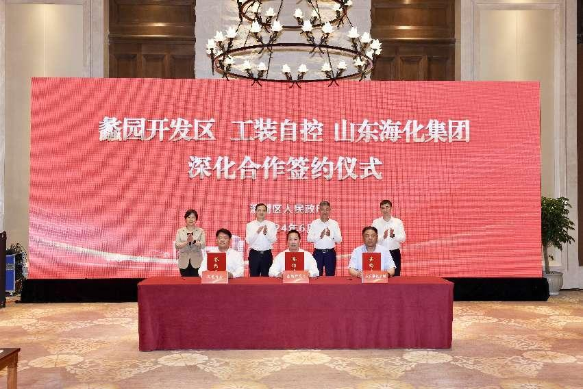 6月25日,無錫工裝與山東海化集團有限公司在無錫舉行戰略合作協議簽約儀式。濱湖區委書記孫海東與海化集團黨委書記、董事長孫令波一行親切會談并見證簽約。海化集團黨委副書記、總經理王永志參加座談并出席簽約儀式,濱湖區及蠡園開發區相關部門領導陪同參加活動。