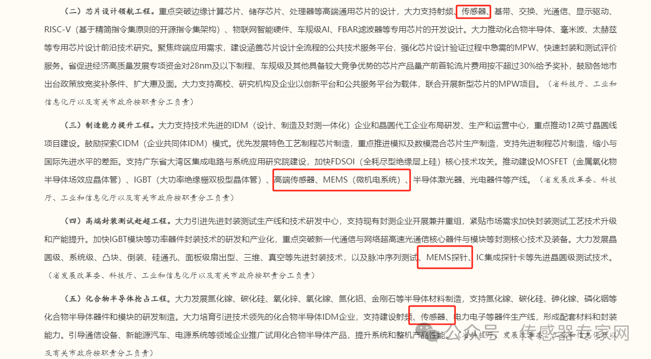 2024年1月,廣東省印發《廣東省培育半導體及集成電路戰略性新興產業集群行動計劃(2023-2025年)》,提出“到2025年,半導體及集成電路產業年主營業務收入突破4000億元,年均增長超過22%。”其中,MEMS、傳感器是《行動計劃》中的關鍵項目。