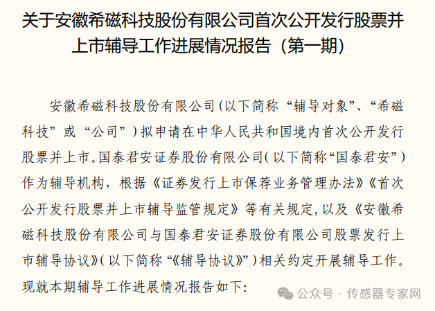 2024年4月28日,希磁科技與國(guó)泰君安簽署上市輔導(dǎo)協(xié)議,截止2024年7月9日,完成第一期輔導(dǎo)工作。