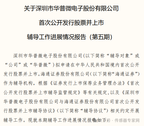 2023年1月16日,華普微與海通證券簽署上市輔導(dǎo)協(xié)議,截止2024年4月10日,華普微已完成第五期上市輔導(dǎo)工作。
