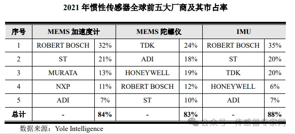 目前,市場上最成功的MEMS加速度計供應商是博世、意法半導體、村田制作所、恩智浦和亞德諾等,其中,博世和意法半導體分別以32%21%市場份額領先。