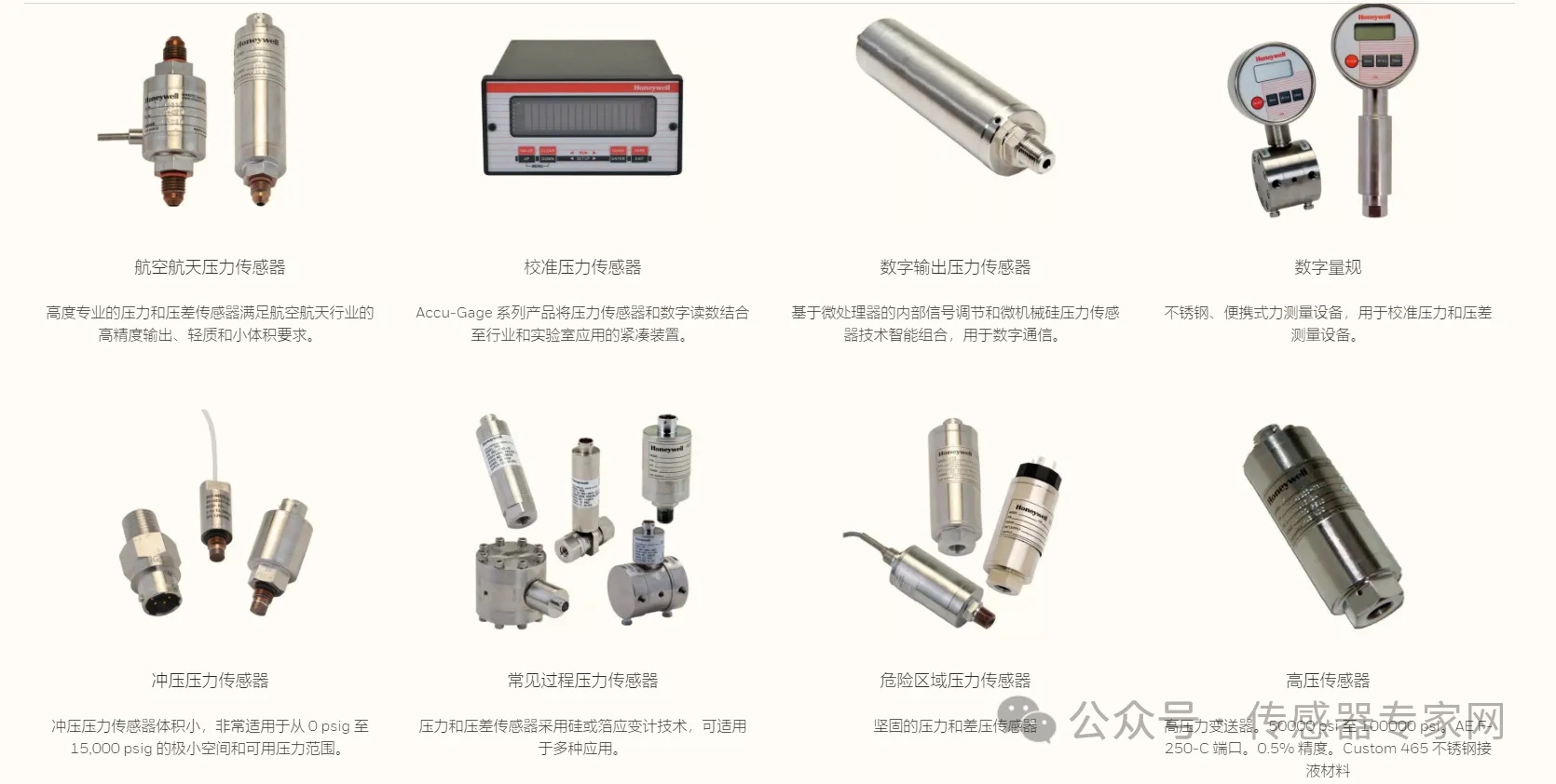霍尼韋爾工業壓力傳感器,來源:霍尼韋爾官網