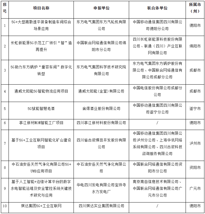 利爾達5G超融合工廠、金輝五金5G智慧工廠“智慧大腦”、5G+云助力吉利駛入“未來工廠”快車道、5G+PON雙千兆筑基奧云徳汽配制造“未來工廠”、華峰集團化工行業5G+全連接工廠、三一裝備工業多網納管平臺及5G時間敏感性優化應用、全興精工5G+智能工廠項目。