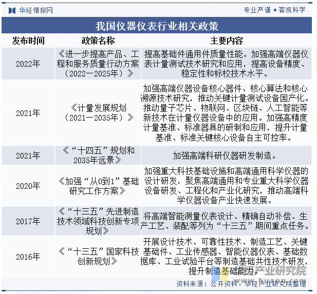 近年來我國密集出臺涉及儀器儀表行業(yè)及相關(guān)應(yīng)用領(lǐng)域的產(chǎn)業(yè)政策,在政策支持下,隨著國內(nèi)頭部企業(yè)逐漸突破核心技術(shù)和產(chǎn)品力兩大發(fā)展障礙,國內(nèi)企業(yè)有望占據(jù)更高的市場份額。