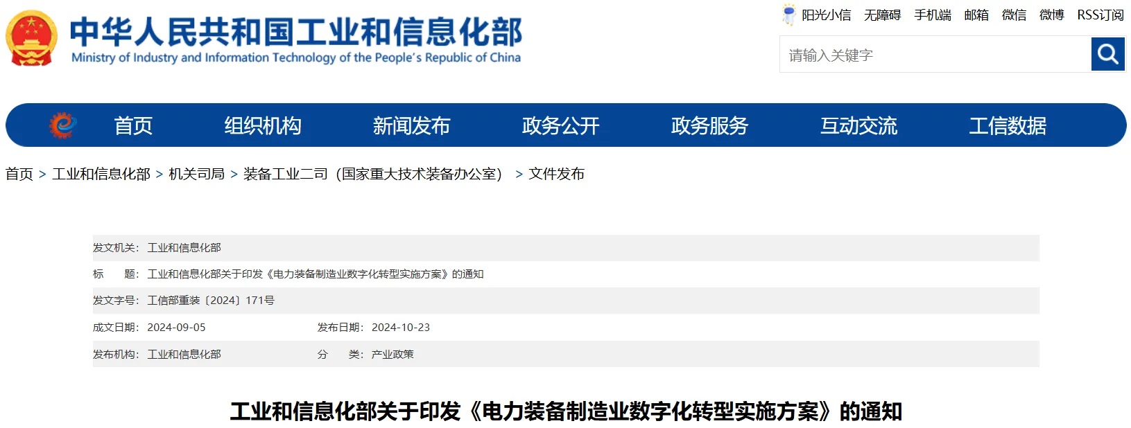 工業和信息化部關于印發《電力裝備制造業數字化轉型實施方案》的通知