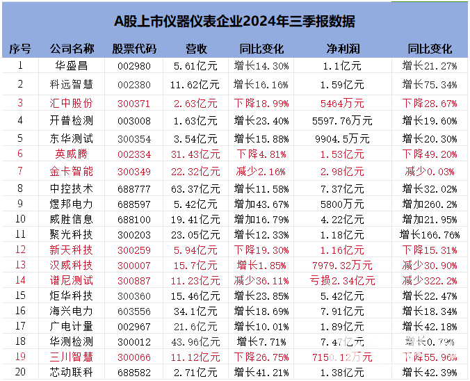 總體來看,2024年三季報披露顯示了上市儀器儀表企業在不同領域的強勁表現,這些公司的業績增長為市場注入了信心,也為投資者提供了豐富的投資選擇。