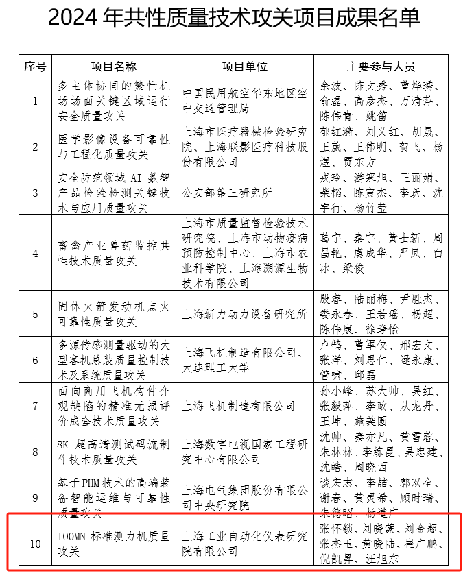 117日,上海市市場監(jiān)督管理局、上海市經(jīng)濟(jì)和信息化委員會(huì)發(fā)布《關(guān)于表揚(yáng)2024 年上海市產(chǎn)業(yè)質(zhì)量攻關(guān)成果的通知》。上海工業(yè)自動(dòng)化儀表研究院有限公司(簡稱自儀院)“100MN標(biāo)準(zhǔn)測力機(jī)質(zhì)量攻關(guān)項(xiàng)目脫穎而出,獲得2024共性質(zhì)量技術(shù)攻關(guān)項(xiàng)目成果獎(jiǎng)。
