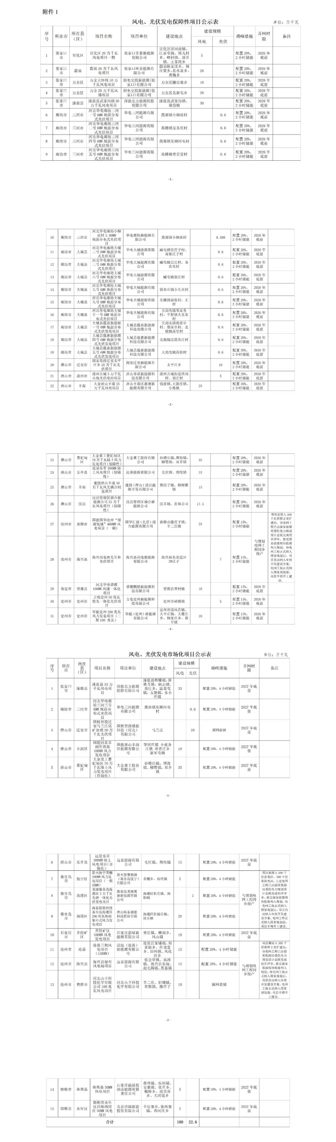 第二批:24個(gè)、2.5GW納入第二批的項(xiàng)目共25個(gè),總規(guī)模259.5萬千瓦,其中保障性項(xiàng)目共13個(gè)、145萬千瓦,市場化項(xiàng)目共12個(gè)、114.5萬千瓦。根據(jù)調(diào)峰措施方面,保障性規(guī)模的配儲(chǔ)比例在15-20%/2小時(shí),而市場化項(xiàng)目配儲(chǔ)比例大多為20%/4小時(shí)。第二批次獲得容量的項(xiàng)目業(yè)主中,唐山海泰新能源獲得規(guī)模最大,為500MW風(fēng)電項(xiàng)目,另外華能(280MW,含100MW風(fēng)電)、華電(250MW,含150MW風(fēng)電)、大唐(220MW,含120MW風(fēng)電)。國家電網(wǎng)(含136MW風(fēng)電)和國家電投(全部為光伏)各獲得150MW項(xiàng)目。