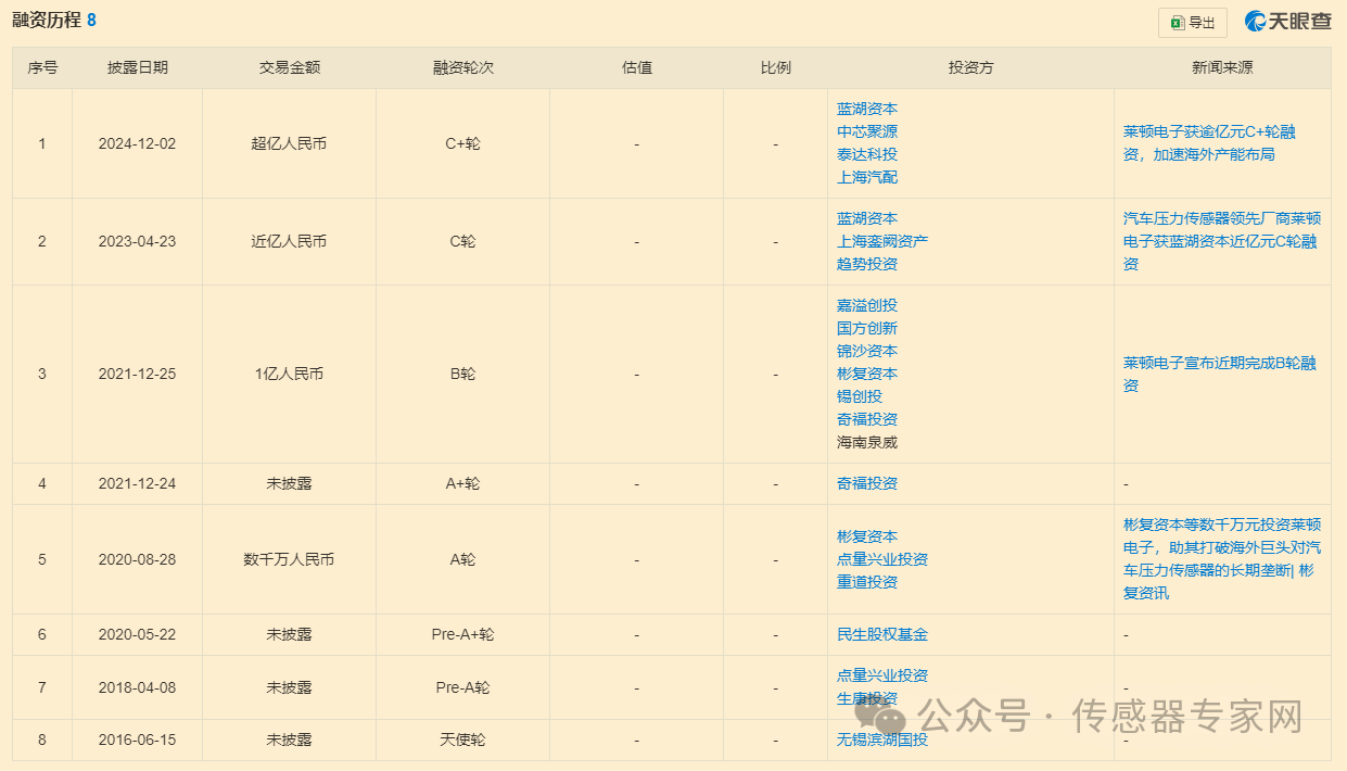 萊頓電子成立于20099月,是一家汽車壓力傳感器廠商,專注于壓力傳感器的研發與制造。經過十余年的潛心研發與市場拓展,該公司已成為中國極少數掌握涵蓋微壓至超高壓全量程范圍的工藝技術(厚膜、MEMS、薄膜、硅微熔)并可以自主設計ASIC芯片的制造商,其產品技術指標處于國際領先水平,生產規模在國內名列前茅。