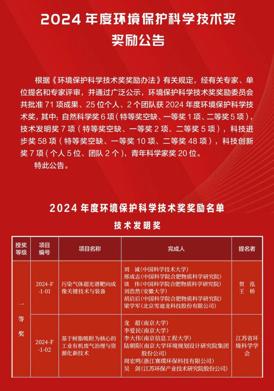 1月10日,生態(tài)環(huán)境部發(fā)布2024年度環(huán)境保護(hù)科學(xué)技術(shù)獎(jiǎng)獎(jiǎng)勵(lì)公告。中國(guó)科學(xué)技術(shù)大學(xué)、中國(guó)科學(xué)院合肥物質(zhì)科學(xué)研究院、安徽大學(xué)、北京雪迪龍科技股份有限公司共同完成的科研成果“污染氣體超光譜靶向成像關(guān)鍵技術(shù)與裝備”,由賀泓、王橋兩位中國(guó)工程院院士提名,榮獲2024年度“環(huán)境保護(hù)科學(xué)技術(shù)獎(jiǎng)”技術(shù)發(fā)明獎(jiǎng)一等獎(jiǎng)。