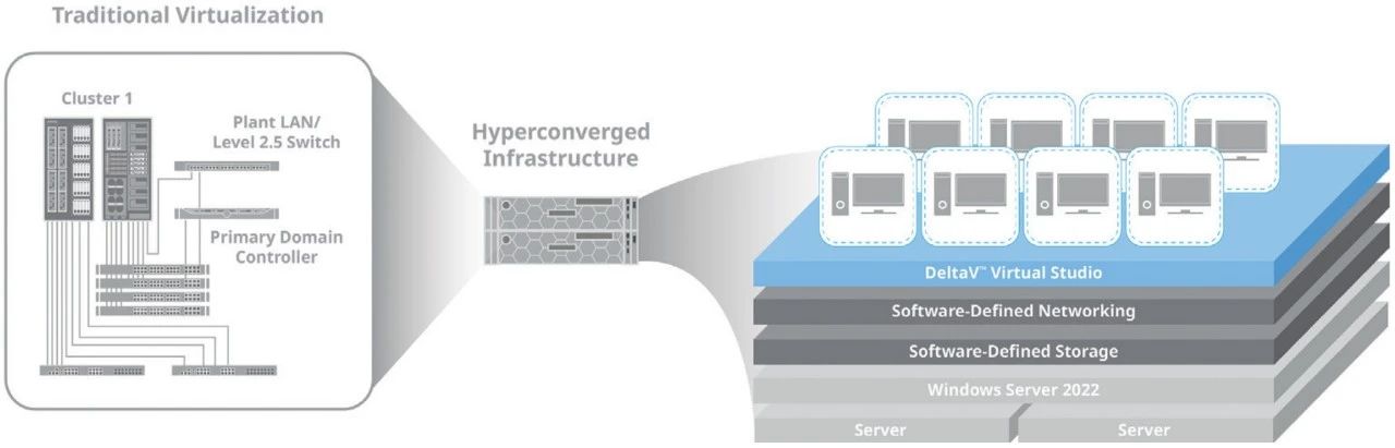 ▲圖1:超融合基礎(chǔ)架構(gòu)(HCI)是軟件定義平臺(tái)的構(gòu)建塊,結(jié)合了傳統(tǒng)和實(shí)時(shí)工作負(fù)載。艾默生的無界自動(dòng)化愿景就是一種軟件定義的控制技術(shù),該模型旨在通過消除專用控制硬件,使項(xiàng)目更容易執(zhí)行,更具成本效益,從而實(shí)現(xiàn)更靈活、可擴(kuò)展、面向未來的運(yùn)營。
