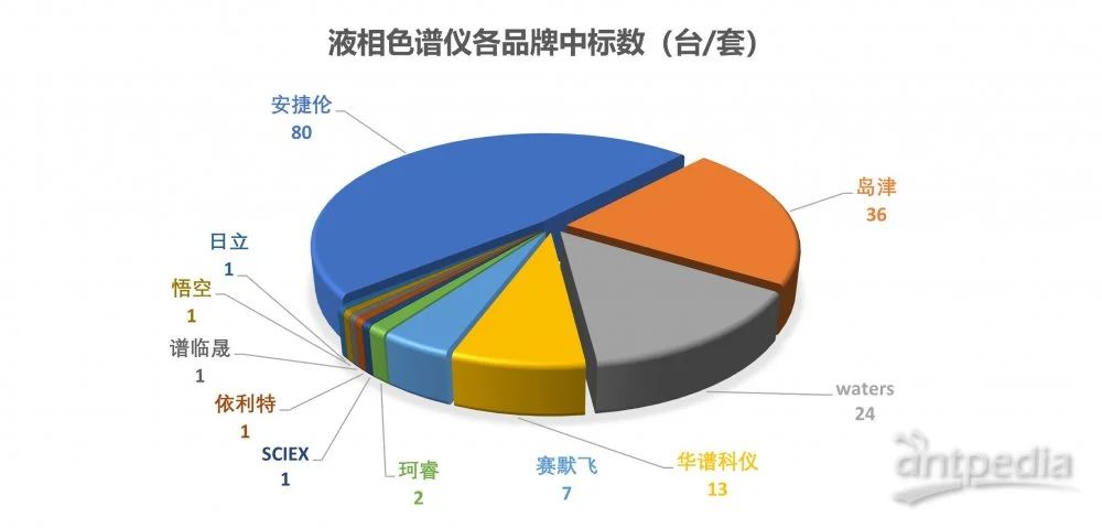 在品牌競爭的激烈角逐中,安捷倫憑借強大的技術優勢和卓越的品牌影響力,成為本次設備更新的最大贏家,其中標數量接近總量的一半。島津和Waters分別以36臺(套)和24臺(套)的中標數量,位列第二和第三。