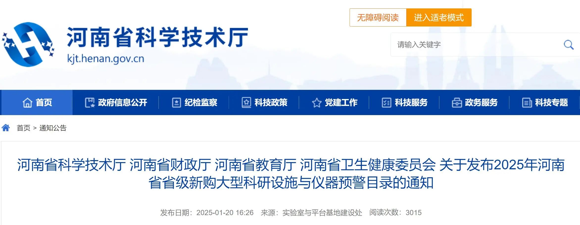 2025年河南省省級新購大型科研設(shè)施與儀器預(yù)警目錄