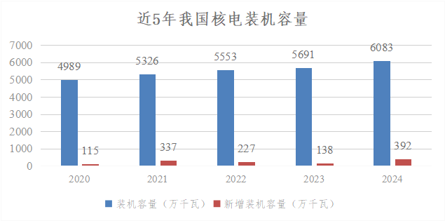 2024年是我國核電發(fā)展具有里程碑的一年,全年新核準11臺核電機組,為歷年核準數(shù)量之最,連續(xù)3年核準機組數(shù)量超過10臺;投入運行核電機組2臺,新增額定裝機規(guī)模240萬千瓦;在運、在建和核準待建核電機組共有102臺,總裝機容量1.13億千瓦,連續(xù)2年位居全球首位。截至當年末,全國運行核電機組共有57臺(不含臺灣地區(qū)),額定裝機容量為5943.17萬千瓦。全年累計核電發(fā)電量為4451.75億千瓦時,比上年同期上升了2.72%,占全國累計發(fā)電量的4.73%,超過太陽能發(fā)電量,排在第4位。由此可見,我國核電裝機占全國總裝機的比例不到2%,但發(fā)出的電量接近全國總發(fā)電量的5%。年設(shè)備利用小時數(shù)為7805.74小時,平均機組能力因子為90.26%。