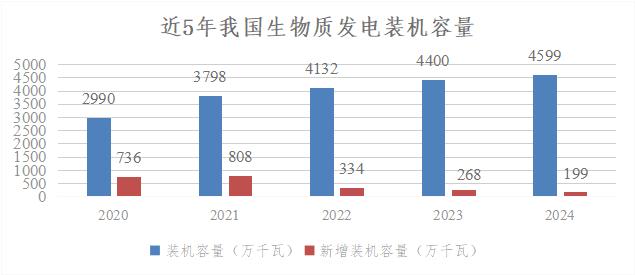 截至2024年末,我國生物質(zhì)發(fā)電裝機容量達到4599萬千瓦,其中2024年新增裝機185萬千瓦,同比增長4%,連續(xù)6年位居世界第一。全年生物質(zhì)累計發(fā)電量2083億千瓦時,同比增長5%。雖然我國生物質(zhì)發(fā)電與其他幾類電力相比微不足道,但基于生物質(zhì)的新生態(tài)能源系統(tǒng)正在建成,已初步形成了以發(fā)電為主,生物天然氣、清潔供暖等非燃料能源電能為輔的多元化發(fā)展格局。據(jù)權(quán)威機構(gòu)研究數(shù)據(jù)顯示,我國生物質(zhì)能開發(fā)潛力約4.6億噸標煤,目前實際轉(zhuǎn)化為能源的還不足0.6億噸標煤,發(fā)展?jié)摿^大。