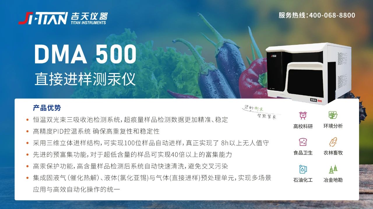 DMA-500直接進(jìn)樣測(cè)汞儀是吉天儀器自主研發(fā)的第二代直接進(jìn)樣元素分析產(chǎn)品,適用于各類(lèi)型固體、液體、氣體樣品中的汞含量分析檢測(cè)。吉天儀器突破關(guān)鍵技術(shù)壁壘,逐步打破核心部件對(duì)進(jìn)口的依賴(lài),產(chǎn)品國(guó)產(chǎn)化率超85%。