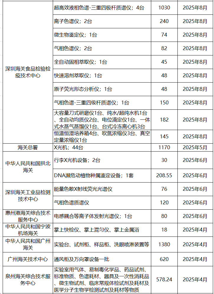 海關系統儀器設備及試劑耗材采購意向匯總