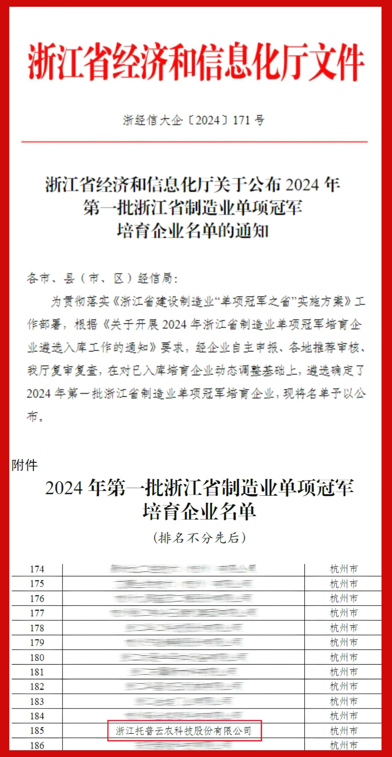 托普云農入選2024年第一批浙江省制造業單項冠軍培