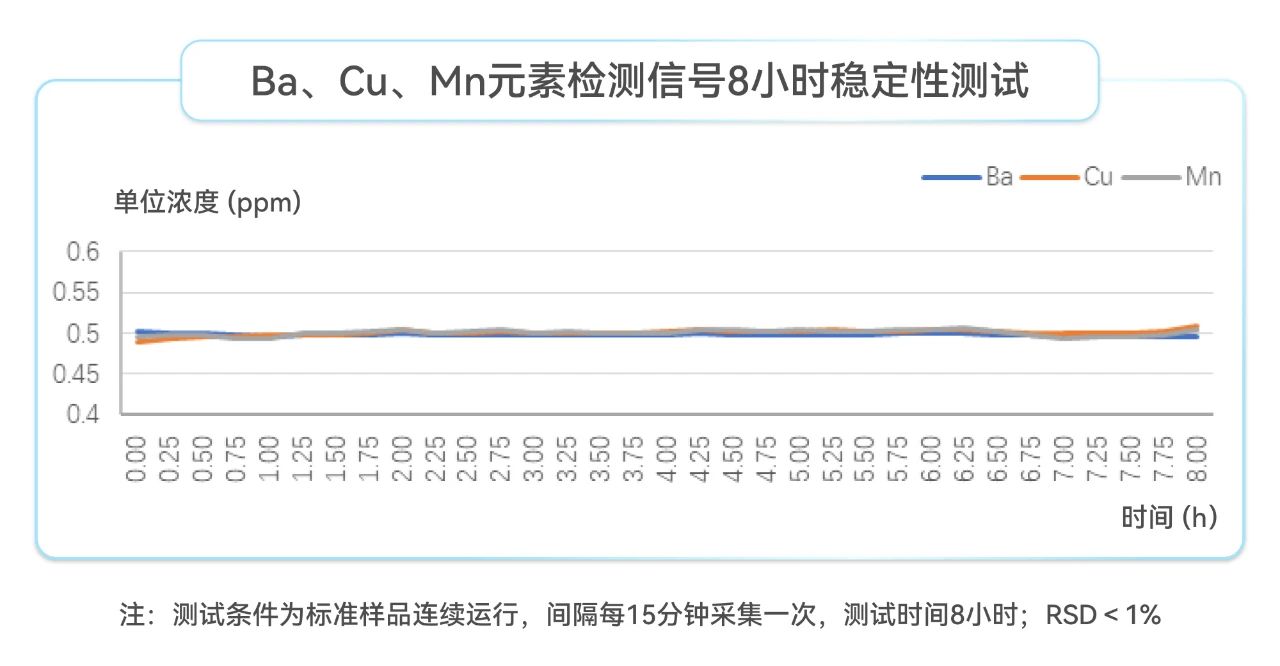 Ba、Cu、Mn元素檢測信號8小時穩(wěn)定性測試