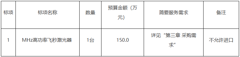 項(xiàng)目名稱:MHz高功率飛秒激光器