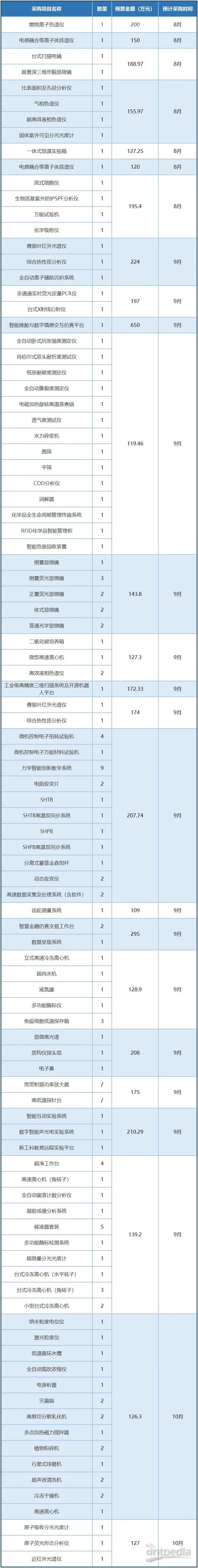 華南理工大學近期公布多批政府采購意向,計劃在8月至10月采購燃燒離子色譜儀、電感耦合等離子體質譜儀、臺式掃描電鏡等130余種儀器設備,用于教學、科研等工作,預算金額達4671.91萬元。