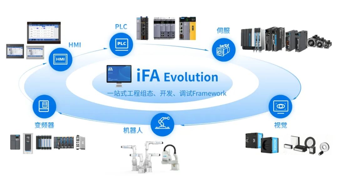 同時(shí),匯川技術(shù)自主研發(fā)的 iFA 平臺(tái)與易盼 Eplan 平臺(tái)實(shí)現(xiàn)深度數(shù)據(jù)接口打通,通過標(biāo)準(zhǔn)化數(shù)據(jù)交互,PLC 硬件配置、網(wǎng)絡(luò)組態(tài)、總線信息、IO 地址與注釋等關(guān)鍵數(shù)據(jù)可在兩大平臺(tái)間高效、無縫流轉(zhuǎn),這不僅優(yōu)化了客戶從硬件設(shè)計(jì)到軟件編程的協(xié)同流程,降低了跨部門溝通成本,更保障了從設(shè)計(jì)到執(zhí)行全流程數(shù)據(jù)的一致性與準(zhǔn)確性。