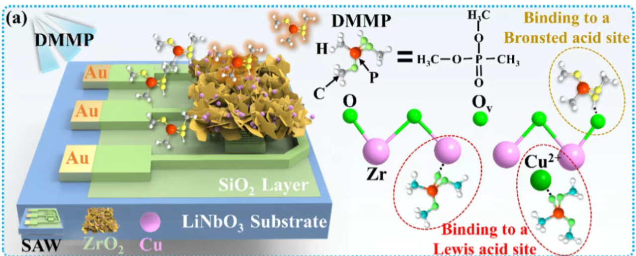在提升檢測靈敏度方面,研究團隊做了以下創新:湖南大學周劍教授團隊開發的 4.98 GHz 超高頻聲表面波(SAW)傳感器,采用 600 nm 波長設計與 Cu-ZrO₂敏感膜,對 DMMP 的靈敏度達 1198.2 kHz/ppm,是低頻 SAW 傳感器的 1198 倍,充分展現了高頻設計的優勢。而華中科技大學團隊則創新性地將異常點(EP)物理機制融入 SAW 傳感器,基于無源宇稱 - 時間對稱性(PT)結構,使頻率偏移對擾動強度呈平方根依賴關系,對 HS 的響應時間<10 秒,檢測限低至 2 ppm,突破了傳統線性響應的性能上限。