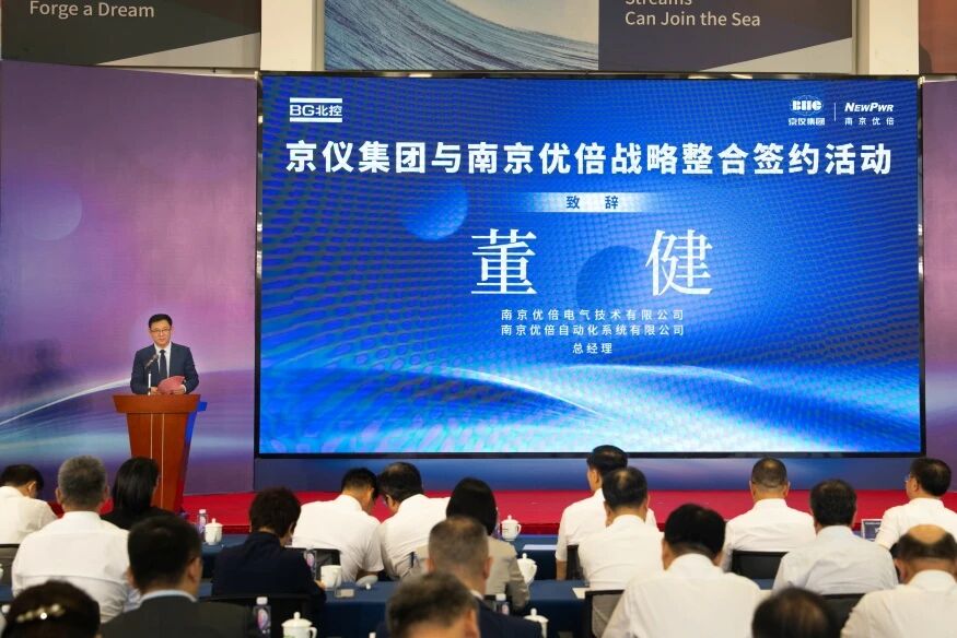董健在致辭中,回顧了企業(yè) 23 年的發(fā)展歷程。他表示,南京優(yōu)倍在過往歲月中歷經(jīng)挑戰(zhàn),憑借全體“優(yōu)倍成就者”的拼搏奮斗,取得了階段性輝煌,成長為行業(yè)標(biāo)準(zhǔn)制定者與市場的領(lǐng)先者之一。面向未來,南京優(yōu)倍將以此次戰(zhàn)略整合為契機(jī),深化科研創(chuàng)新,加快市場拓展步伐,以 “二次創(chuàng)業(yè)” 的姿態(tài)勵(lì)精圖治、奮勇爭先,為國家、為行業(yè)貢獻(xiàn)更大價(jià)值。