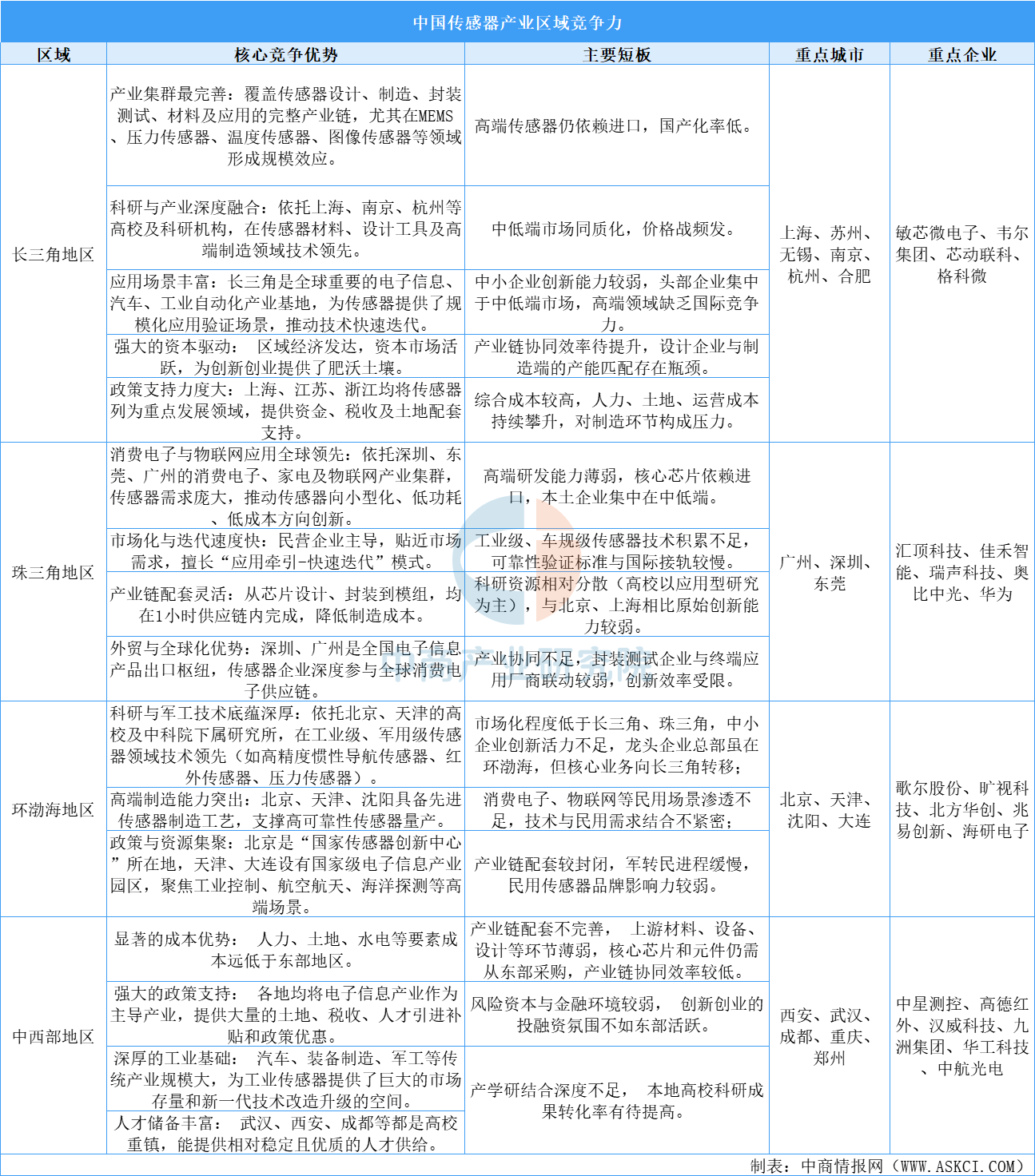 傳感器產(chǎn)業(yè)區(qū)域競爭梯隊