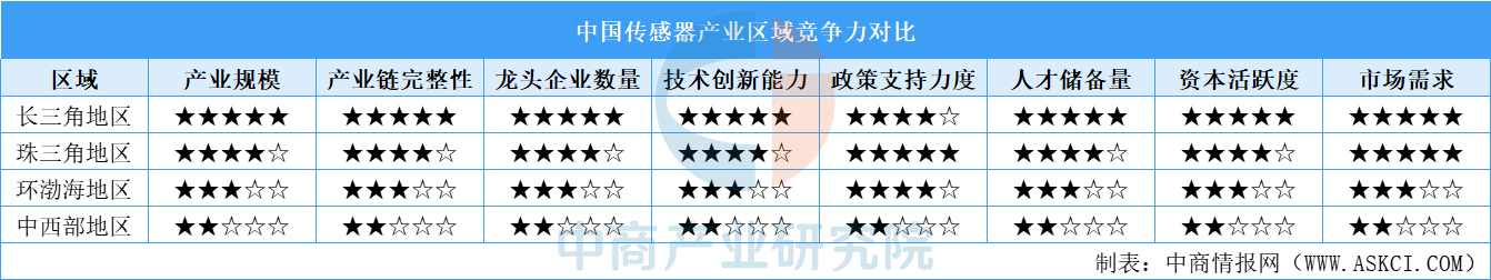 傳感器產(chǎn)業(yè)區(qū)域競爭力分析