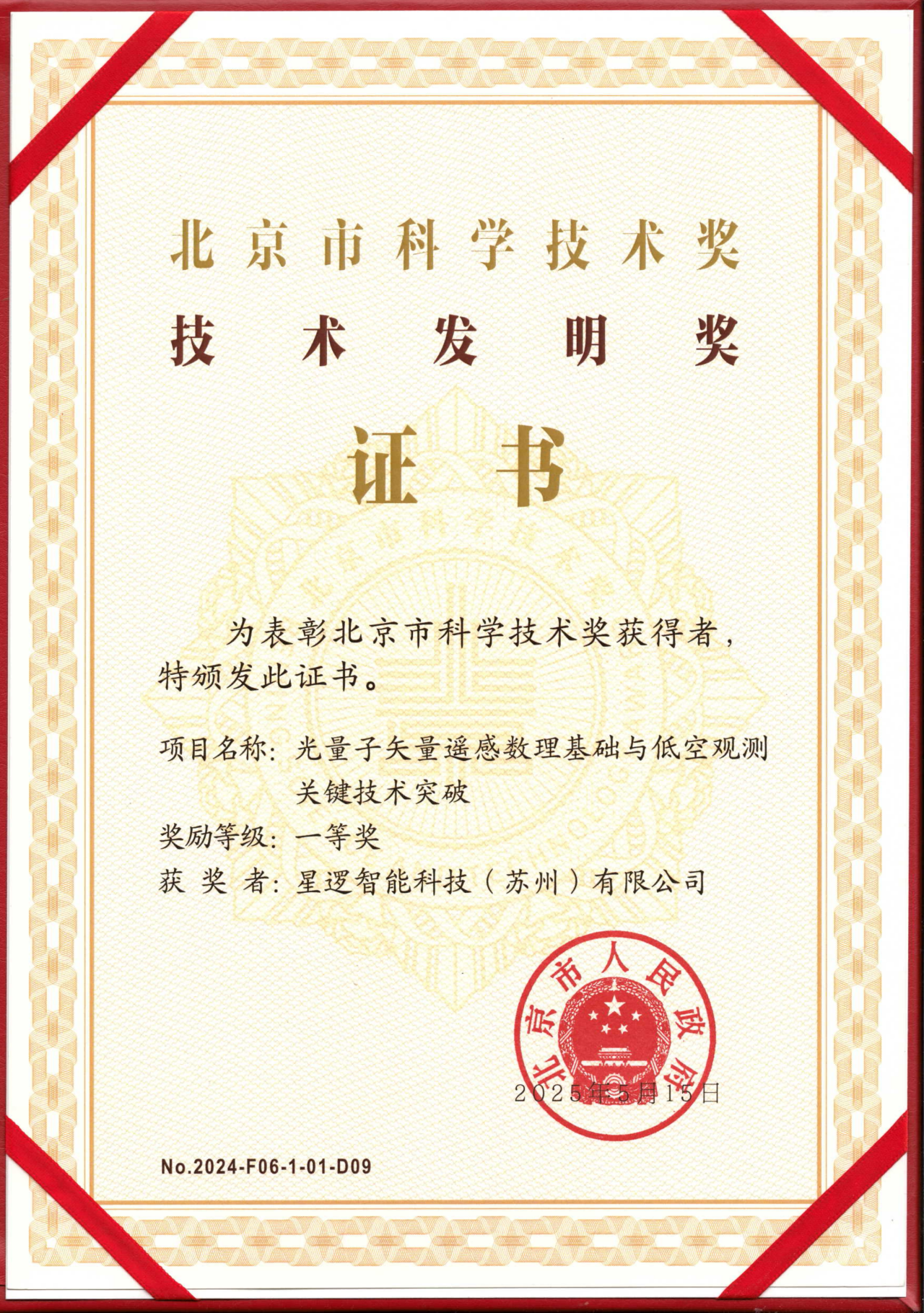 近日,蘇州工業園區科技招商中心引進企業星邏智能科技(蘇州)有限公司(以下簡稱“星邏智能”)與北京大學等單位共同完成的“光量子矢量遙感數理基礎與低空觀測關鍵技術突破”項目榮獲北京市科學技術發明一等獎。