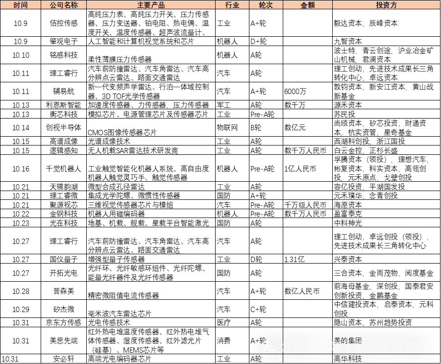 2025年9月份傳感器行業(yè)的融資情況如下表統(tǒng)計。