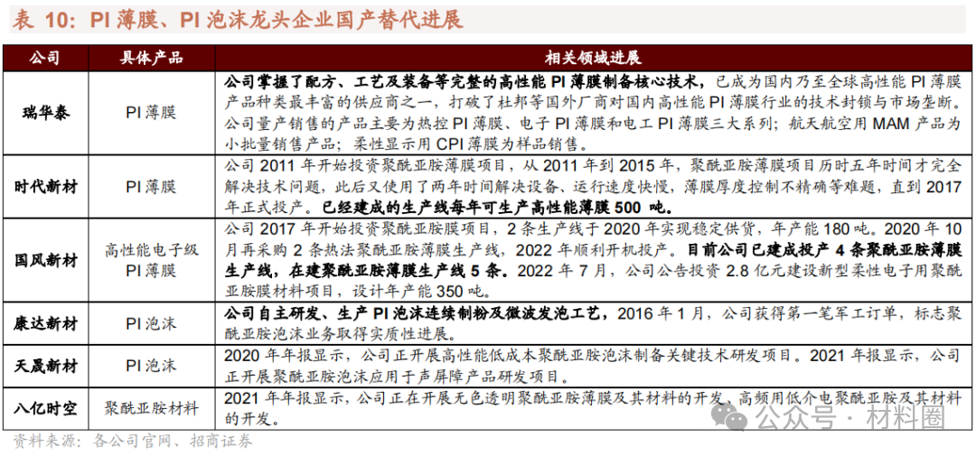 ⚑聚酰亞胺產業鏈國產化進程