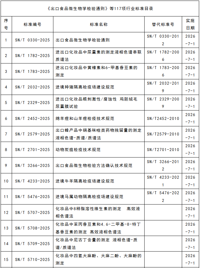 1211日,海關總署發(fā)布《出口食品微生物學檢驗通則》等117項行業(yè)標準。這些新發(fā)布的行業(yè)標準旨在進一步規(guī)范出口食品的檢驗流程,確保出口食品的質(zhì)量與安全,提升我國食品在國際市場上的競爭力。