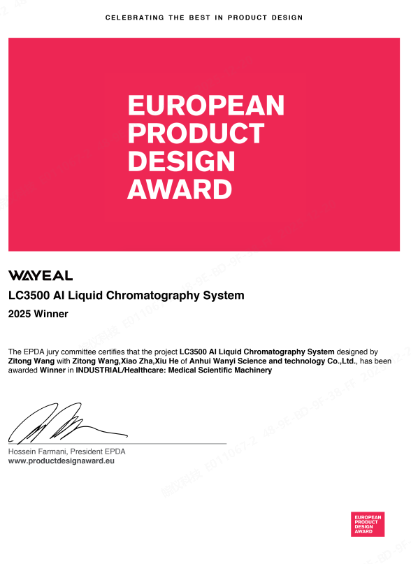 近日,安徽皖儀科技股份有限公司(以下簡(jiǎn)稱(chēng)“皖儀科技”)LC3500液相色譜系統(tǒng)憑借卓越的綜合實(shí)力,榮膺2025歐洲產(chǎn)品設(shè)計(jì)獎(jiǎng)(EUROPEAN PRODUCT DESIGN AWARD),成為皖儀科技高端分析儀器在本年度國(guó)際獎(jiǎng)項(xiàng)征程中的里程碑。該獎(jiǎng)項(xiàng)不僅是對(duì)產(chǎn)品性能與設(shè)計(jì)的充分肯定,更代表了歐洲評(píng)委對(duì)皖儀科技品牌的高度認(rèn)可,為中國(guó)分析儀器拓展全球高端市場(chǎng)注入了強(qiáng)勁動(dòng)力。