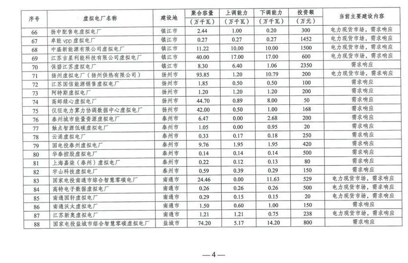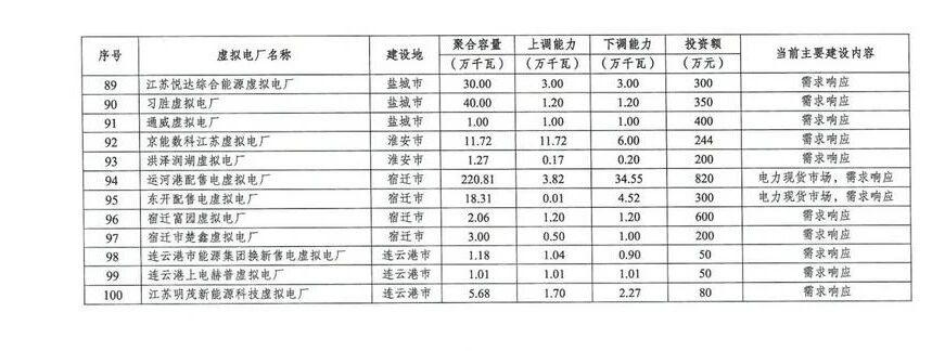 江蘇省虛擬電廠重點建設項目清單:100個項目,總投