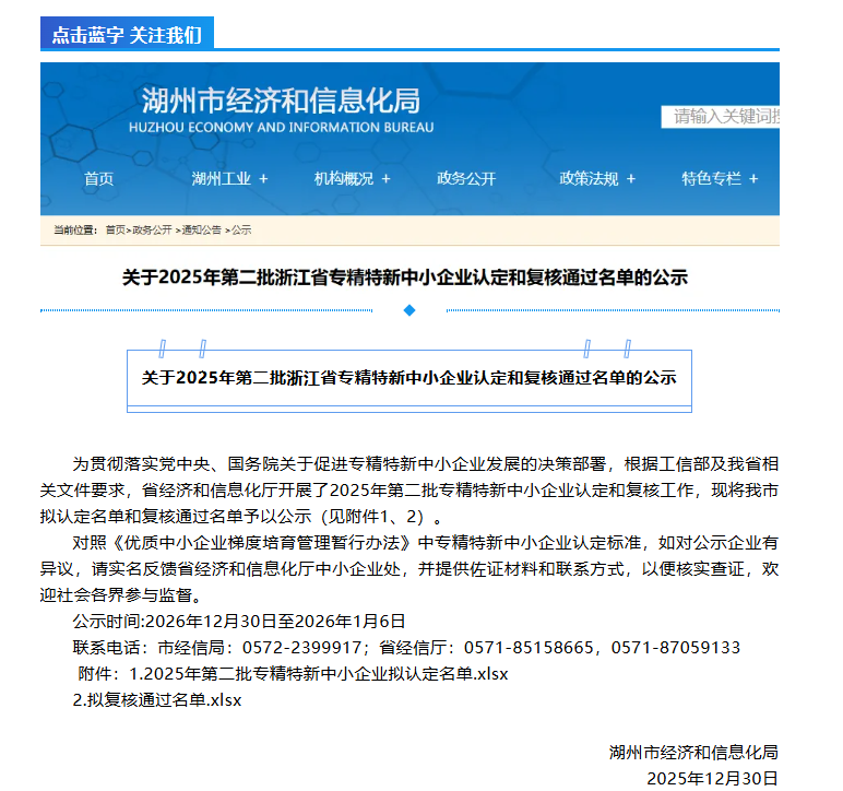 此外,浙江省經濟和信息化廳還公示了2025年第二批專精特新中小企業擬認定企業名單,西力科技全資子公司浙江西力智能科技有限公司(簡稱“浙江西力”)憑借在智能配電領域的技術積累與創新能力,成功入選該名單。