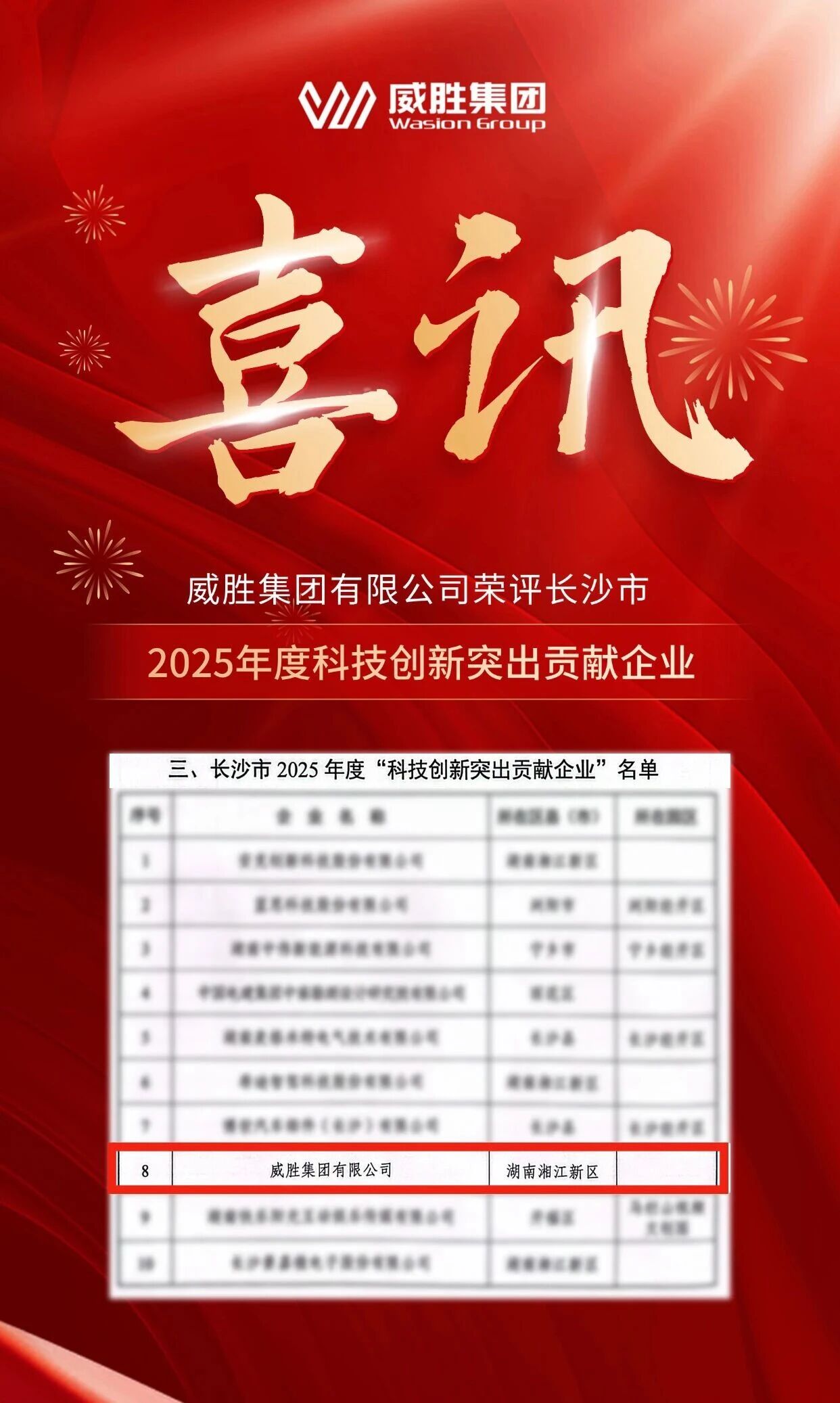 會上發布了長沙市2025年度“經濟質效突出貢獻企業”“工業強市突出貢獻企業”“科技創新突出貢獻企業”“消費引領突出貢獻企業”名單,每個名單僅10家企業上榜。威勝集團有限公司榮評長沙市2025年度“科技創新突出貢獻企業”。